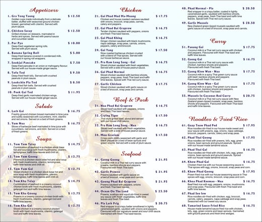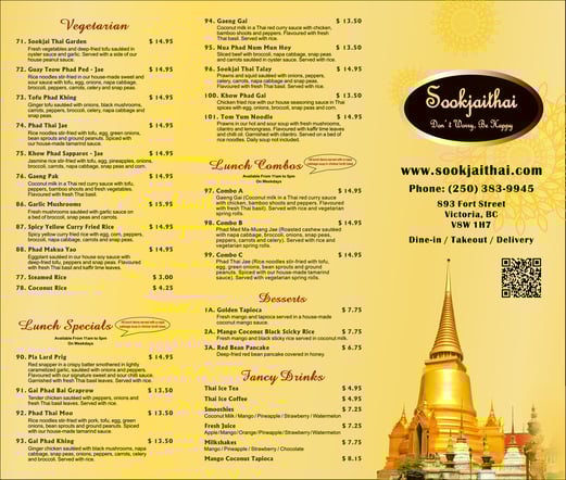 This is a menu for those who wish to see all of Sookjai's dishes in one page. The prices on the menu below are outdated.